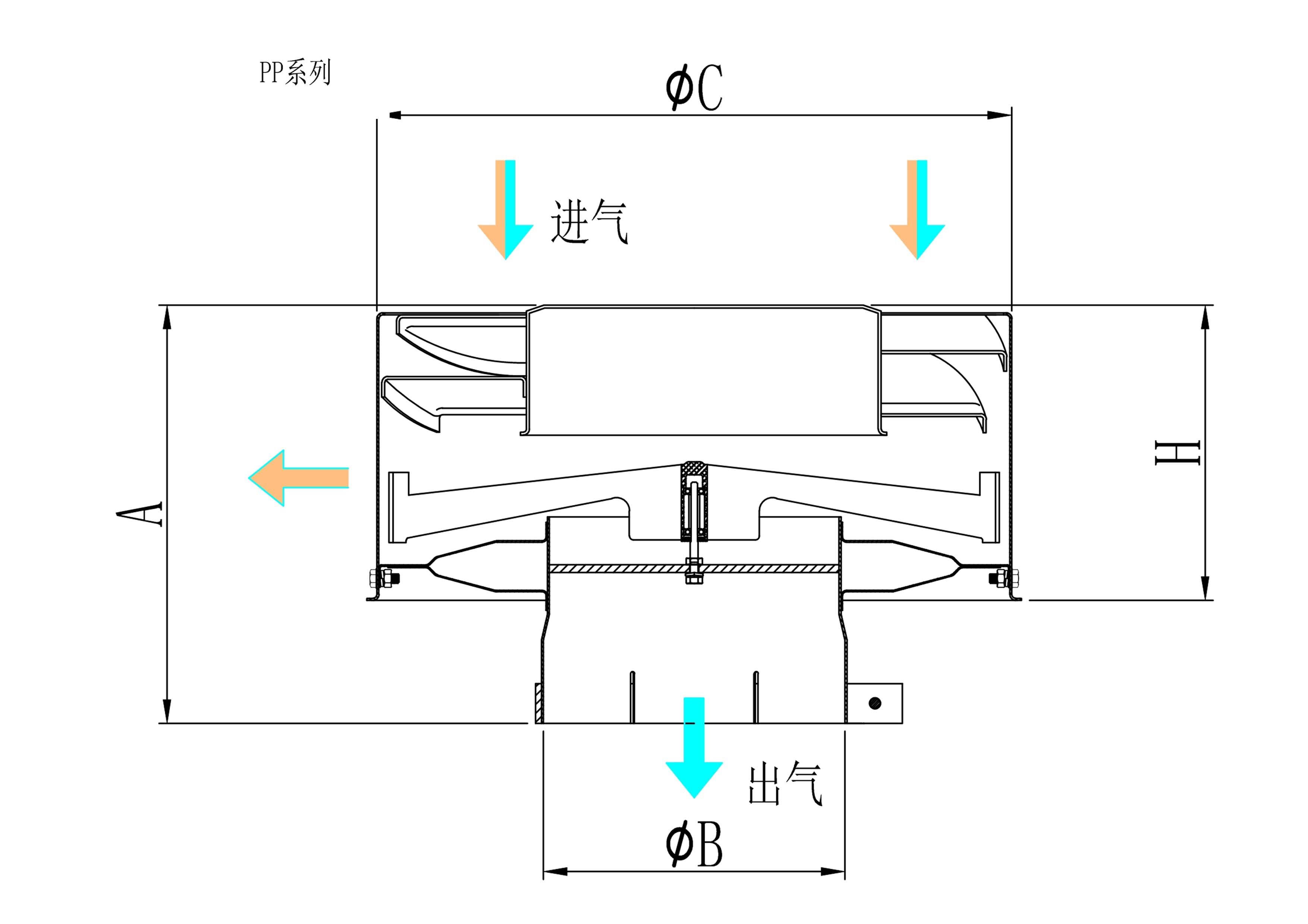 | (ارتفاع) | ح (طول) | φc (القطر) | B (قطر المخرج) | ||||
